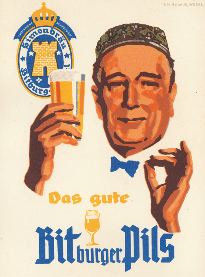 On February 8, 1909, Bitburger produced the first brew of the Bitburger Simonbräu Pilsener. To coincide with the introduction of the new product, Theobald Simon launched the brewery’s first large-scale advertising campaign.