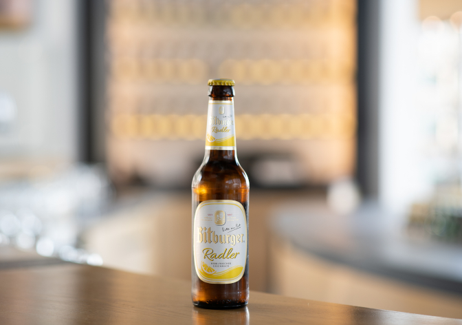 Bitburger Radler is introduced: a beer-based mixed drink made with Bitburger Premium Pils and sparkling lemonade. Produced without any artificial additives, our Radler is an incomparable, sparkling-fresh beverage that’s not too sweet.
