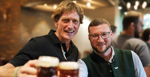 Brewing together, celebrating together: The brewers from Bitburger and Sierra Nevada raise a glass of their festbier, together with a lot of enthusiastic visitors.
