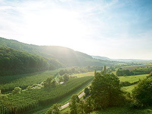 The soul of a beer is the hop which, with its natural aroma and the bitter substances it contains, produces the characteristic slightly tart taste. Worldwide, there are only a few areas where the best hops can be grown successfully. One of these is Hallertau in Bavaria, another is Holsthum near Bitburg in the Südeifel National Park. The famous Bitburger Siegelhopfen come from these areas. Both of these certified hops are used in our Bitburger Premium Pils.