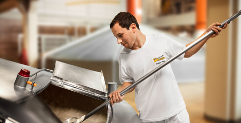 The process starts with our barley being malted at our partner malthouses, and the resulting malt is delivered here. Milling leaves the malted barley in fragments of various sizes, but leaves its husks largely intact. This releases the precious insides of the grain, without grinding the husks of the malt too finely. The husk of the barley grain needs to be preserved, as these will act as a natural filter at a later stage of the brewing process. The style of beer is largely determined by the malt: the colour, the taste, and its overall character.
