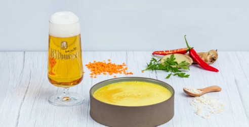 - Add the lentils and pour the Bitburger 0.0% Drive into the mix. Pour in the vegetable broth and coconut milk then simmer.