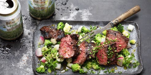 - Clean the cauliflower, put on baking paper and season with salt and pepper. Then put on a piece of aluminum foil, fold in lightly and wet with beer and oil. Seal into a packet and grill with the lid closed for approx. 1 hour. Open the parcel 10 minutes before the end of the grill time, sprinkle with cheese and grill.