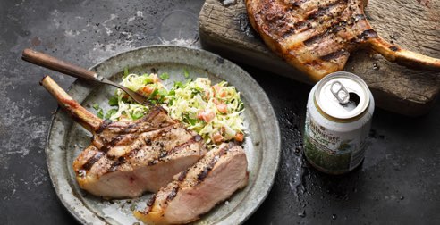 4 tomahawk steaks from the country pig, each approx. ½ lb