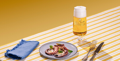Why it pairs well: legumes and seafood come together in a dish that’s both deep and refined. The beer’s freshness cleanses the palate and enhances every bite.
